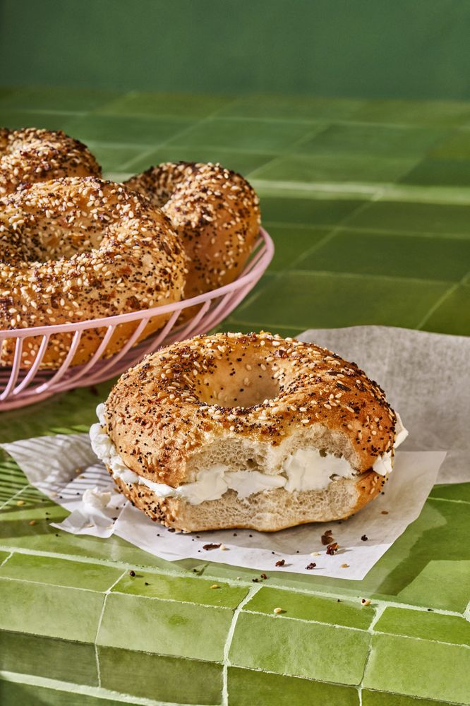 Egg whites, aged white cheddar, fresh avocado, vine-ripened tomato, salt and pepper on a Multigrain Bagel Flat.
